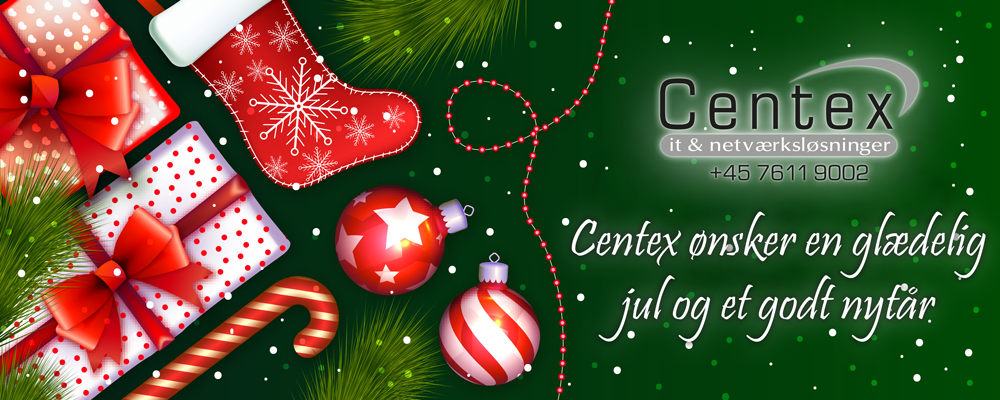Centex IT & Netværksløsninger ønsker alle en rigtig glædelig og et godt nytår! Selvom juledagene nærmer sig er vi stadig tilgængelige 24/7 og kan kontaktes på 76 11 90 02.